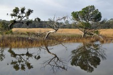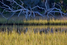 Salt marsh grasses, shrubs and a variety of trees live in Jekyll’s tidal marsh, which is protected by law from development. Mammals, reptiles and birds live and breed in the approximately 1,300 acres of salt marsh.